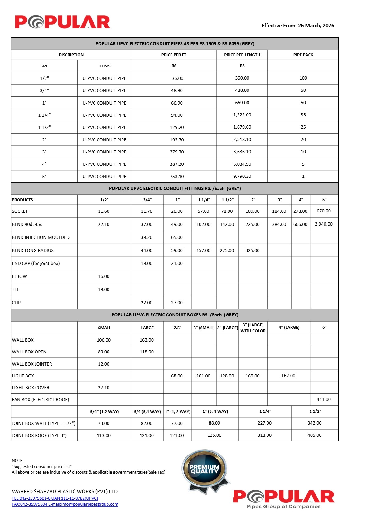 U-PVC Electric Conduits Updated Price List